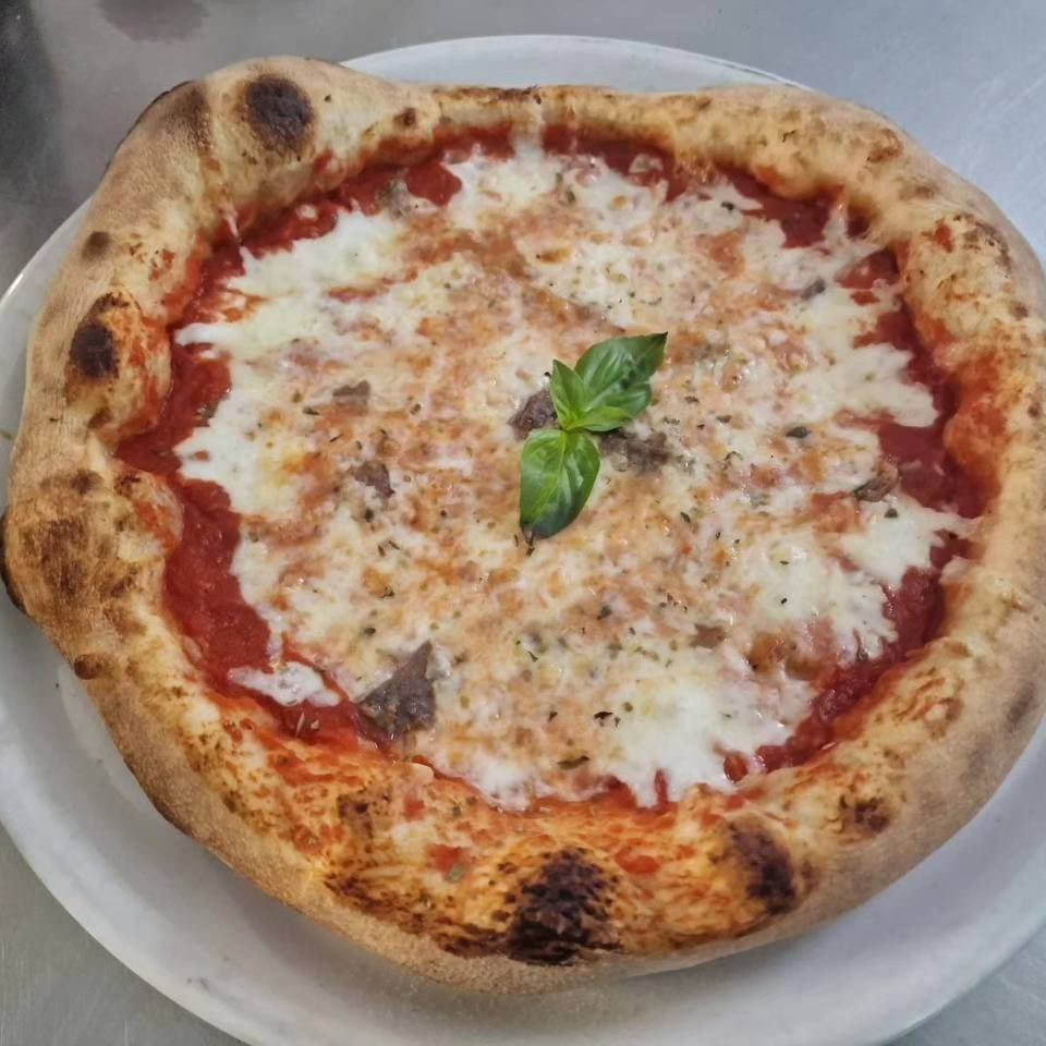 Pomodoro, Mozzarella, Salame Piccante, Acciughe, Peperoni, Peperoncino, Olio, Origano